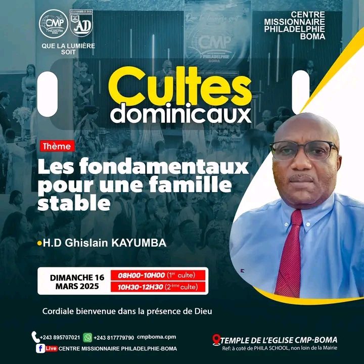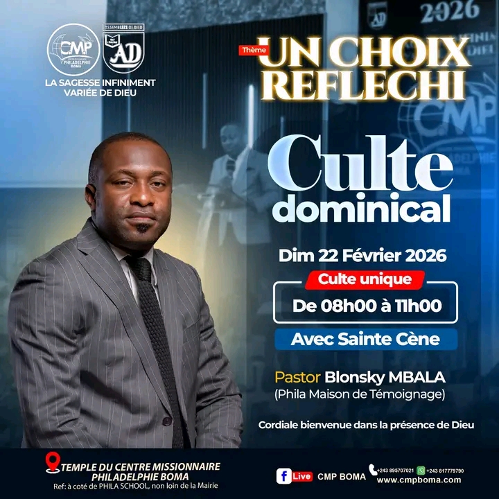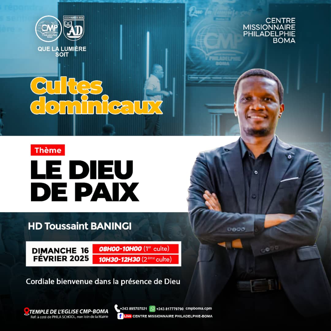 Suivez toutes actualités du centre missionnaire philadelphie boma,eglise de la 37 ieme communauté des ensemblées de Dieu...