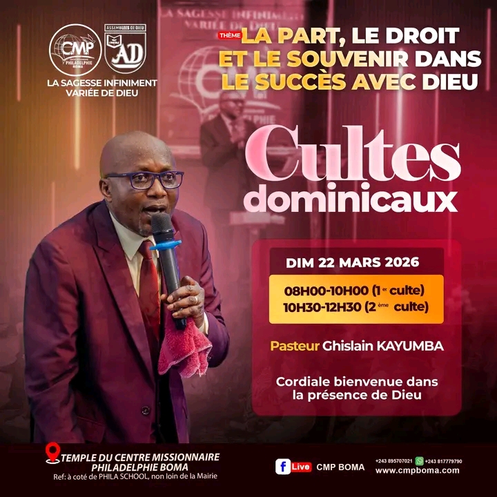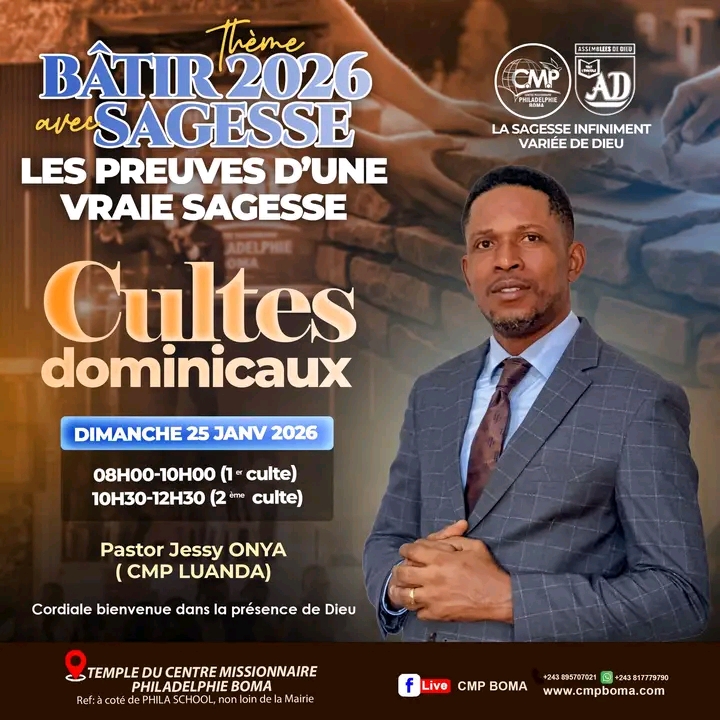 Suivez toutes actualités du centre missionnaire philadelphie boma,eglise de la 37 ieme communauté des ensemblées de Dieu...
